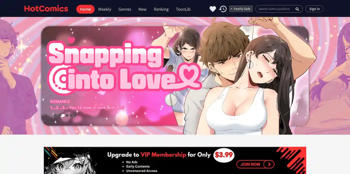 The site has a massive selection of adult comics, new and original series, and tons of content that is sure to have you browsing around for hours. They also have a relatively affordable VIP membership that provides access to ad-free browsing, early content releases, and access to uncensored content.