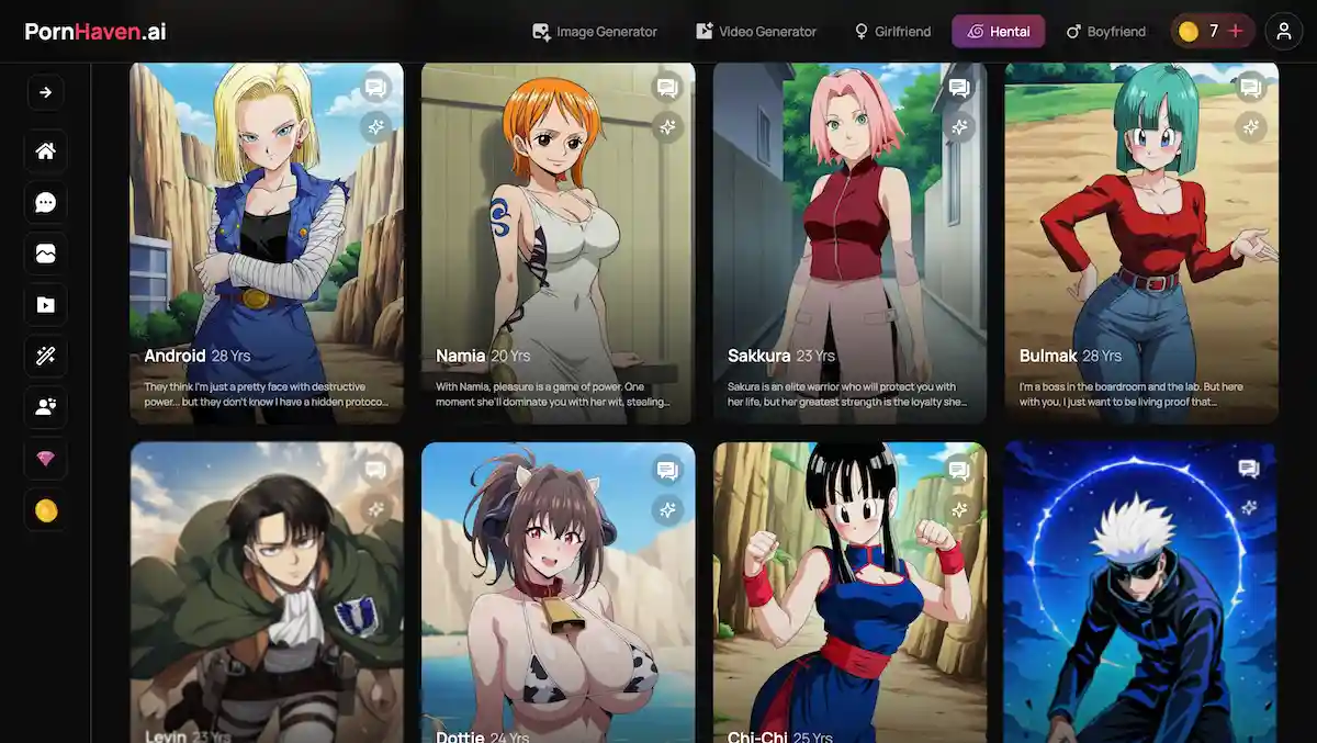 The absolute best feature on PornHaven is that it’s not just another manga website. It’s an interactive AI platform, where you can create unique anime characters, engage in fun sexting experiences, and generate custom images or videos using artificial intelligence.